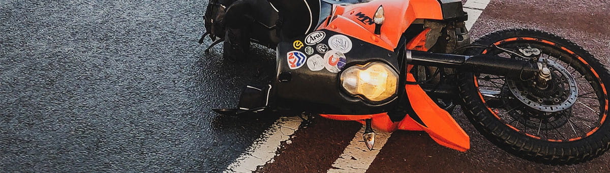 "Een ongeval kondigt zichzelf niet aan", schrijft Frank van Engen. Op een druilerige dag in 2019 stopt hij nietsvermoedend op een T-splitsing. Hij ziet van rechts een Jeep komen en wacht netjes aan de as van de weg tot hij zelf linksaf kan slaan. Maar het loopt anders: "De Jeep kwam recht op mij af en reed tegen mij en mijn motor aan, waardoor de motor en ik omvielen. De motor had flink wat schade en zelf had ik hier en daar flink pijn, maar geen blijvend letsel." Frank vermoedt dat de bestuurder afgeleid was door zijn telefoon of navigatie. Waarschijnlijk greep het automatisch remsysteem van de Jeep in en voorkwam erger. "Zo zie je maar: overdag, stilstaand, met verlichting en toch niet gezien, maar volkomen onverwacht geschept!"